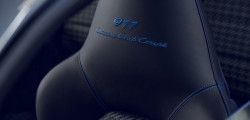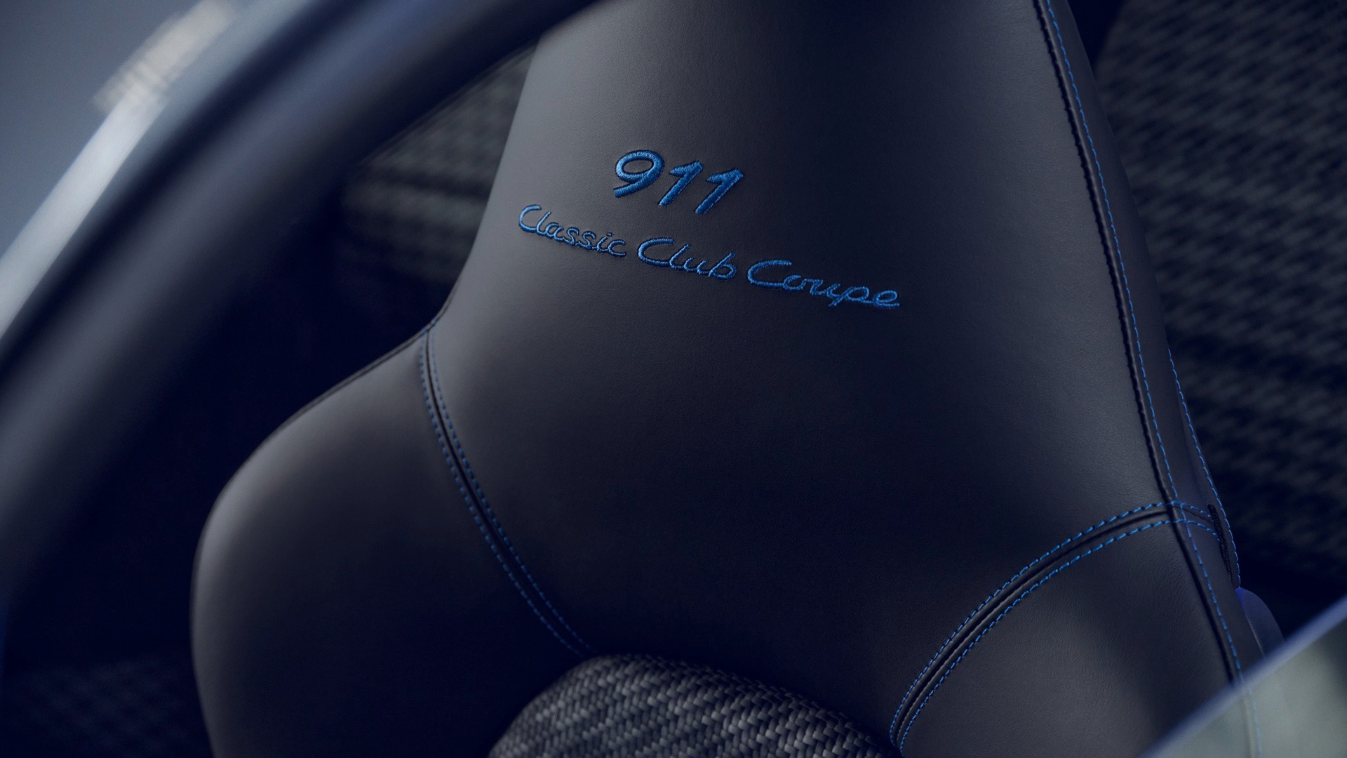 In terms of styling, the designers chose Sport Gray Metallic as the exterior color. There are blue elements in PCA's characteristic Club Blue hue as a reference to the biggest and oldest Porsche club. The designers chose a houndstooth motif for the seat trim, which is made up of braided leather strands. The roof lining and pillars are made of Alcantara, and a logo on the dash reads 911 Classic Club Coupe No. 001/001.