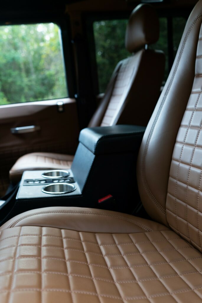 Interior upgrades are equally noteworthy, featuring a new 10-speaker audio system, a double-din multimedia system equipped with Apple CarPlay, and a reversing camera. What's more, the Land Rover Defender now boasts keyless entry, various charging points, retrimmed brown leather seats, and door panels adorned with unique stitching—an appealing touch for potential buyers.