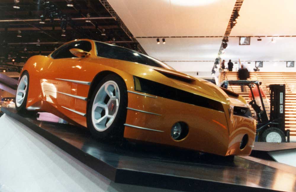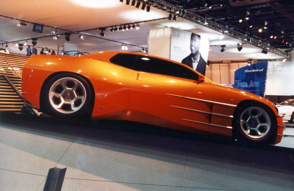 This concept car appeared in the 1999 Detroit Auto Show, as a revival of the '60s and '70s iconic muscular Pontiac GTO cars.