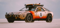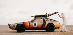 Speaking of the looks, the Porsche 928 Sufari sits higher than usual and sports beefy all-terrain tires. The suspension, gearbox, and differential have been modified to handle off-roading and sandy beaches. Meanwhile, Lange & Lange, a design studio based in Warsaw, took care of the exterior. Just look how amazing those Rothmans-inspired stripes and wide wheel arches are!