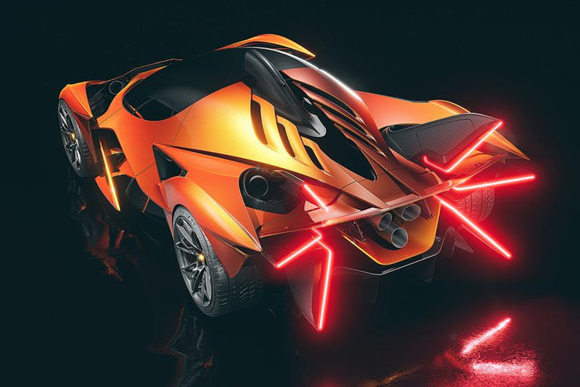 To begin, the car's most ridiculous feature is its rear end, which features three exhaust tips organized in a triangular pattern above a large diffuser integrated into the taillight layout.