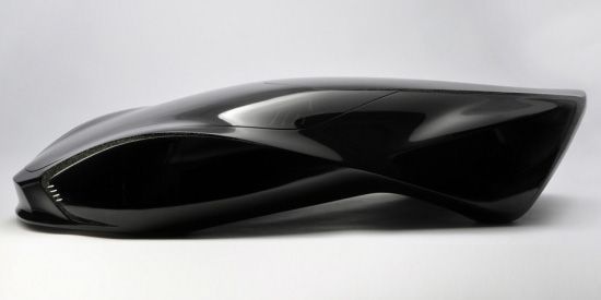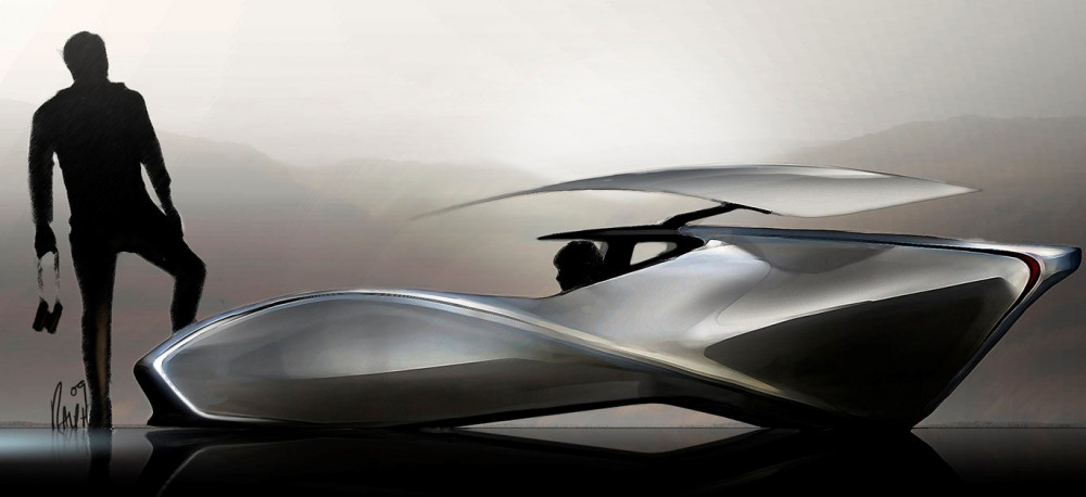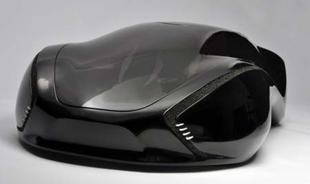 This weirdness is a concept car, created by Ralph Tayler Webb. The car is electrical and has an aerodynamic body, with integrated wheels. The tear-drop shape certainly helps aerodynamic and maneuvering.
