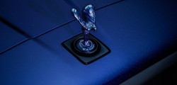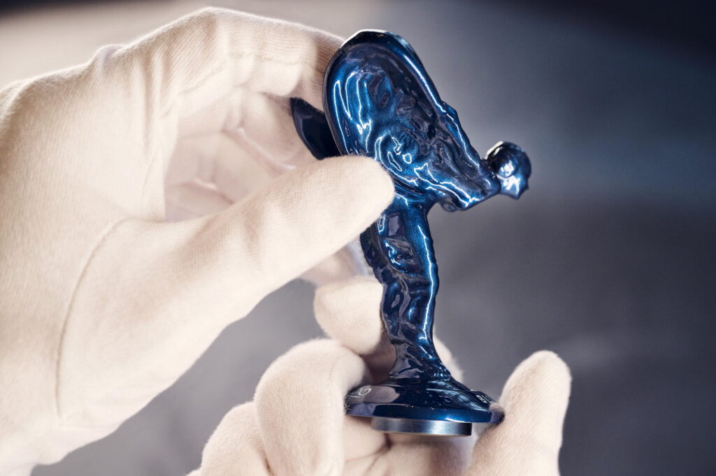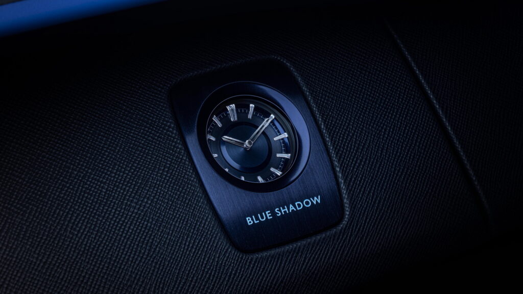 The Cullinan Blue Shadow flaunts a brand-new Stardust Blue paint job on the outside. It looks great with the thermal tile-inspired satin-finished grille and bumper accents. Furthermore, the Spirit of Ecstasy hood ornament is 3D printed from titanium and given an iridescent sheen with a coat of blue lacquer.