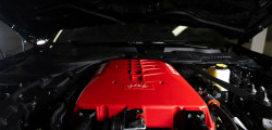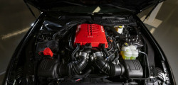 The exact components of the supercharger were not disclosed by Roush, but it was said that it is "based on an inverted Eaton TVS R2650 with a front inlet, dual intercoolers,, and an 84mm pulley, which makes a peak boost of 13 psi at 7,500 rpm."