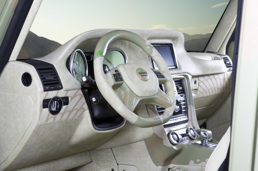 G63 Sahara Edition is more than a modified G-Klass and we can safely say that it is an absolutely unique model. Besides army camouflage style, the German SUV has received new body panels, 21 and 23-inch carbon fiber wheels, new optical lights, a completely new interior, and a significant boost of horsepower. Thus the 5.5-liter V8 engine now develops 828 horsepower and 1000 Nm of torque!