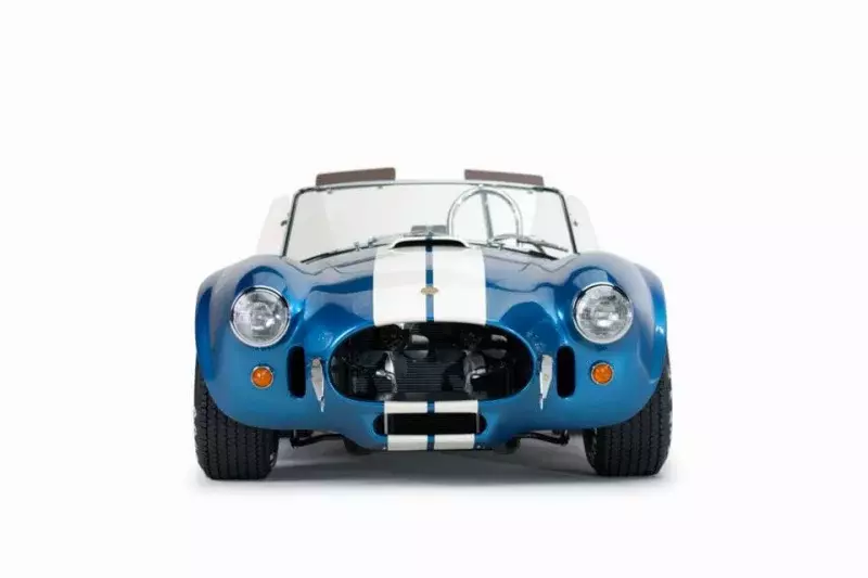 Alternatively, the body may be made of aluminum or fiberglass. The price for the aluminum is 179.995 USD or 119 995 USD for the fiberglass. Compared to a simple model Shelby Cobra 427 has new carpets, body pouch, anniversary emblems, and nameplates which contain the engine series and the body number, which is CSX 4550 - CSX 4599!
