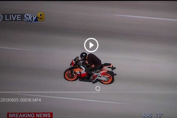 The video demonstrates a biker in a pretty bad mood that literally attacks the side mirrors of the rest of the cars, while he is driving at an excessive speed of over 90 mph!