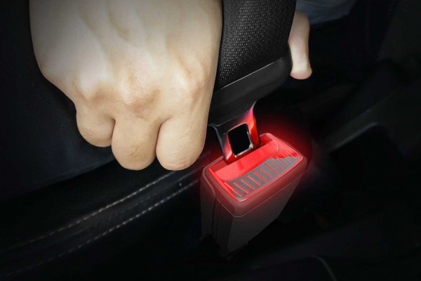 Imagine the seatbelt buckle illuminated by multi-color LEDs that operate in three different color modes. The color white light changes to red when the passenger sits in the seat, and after they buckle up, the light then turns green.
