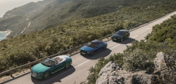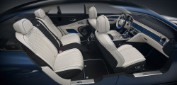 The Mulliner Nauticis Collection, which was ordered by a Fort Lauderdale dealer and includes four Continental GT V8 Convertibles finished in Aegean Blue and Ghost White, gets things started. They have 22-inch wheels with Aegean Blue highlights, and also a front splitter, side skirts, rear diffuser, and rear spoiler made of body-color carbon fiber.