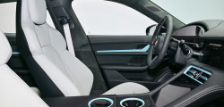 Black, Crayon, and Meissenblue were used interchangeably throughout the Porsche Taycan 4S Cross Turismo's interior to provide a sense of individuality. The singer also received a custom indoor vehicle cover and headrests emblazoned with a cloud emblem.