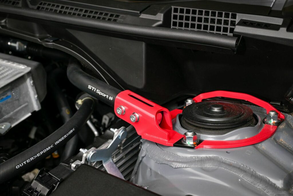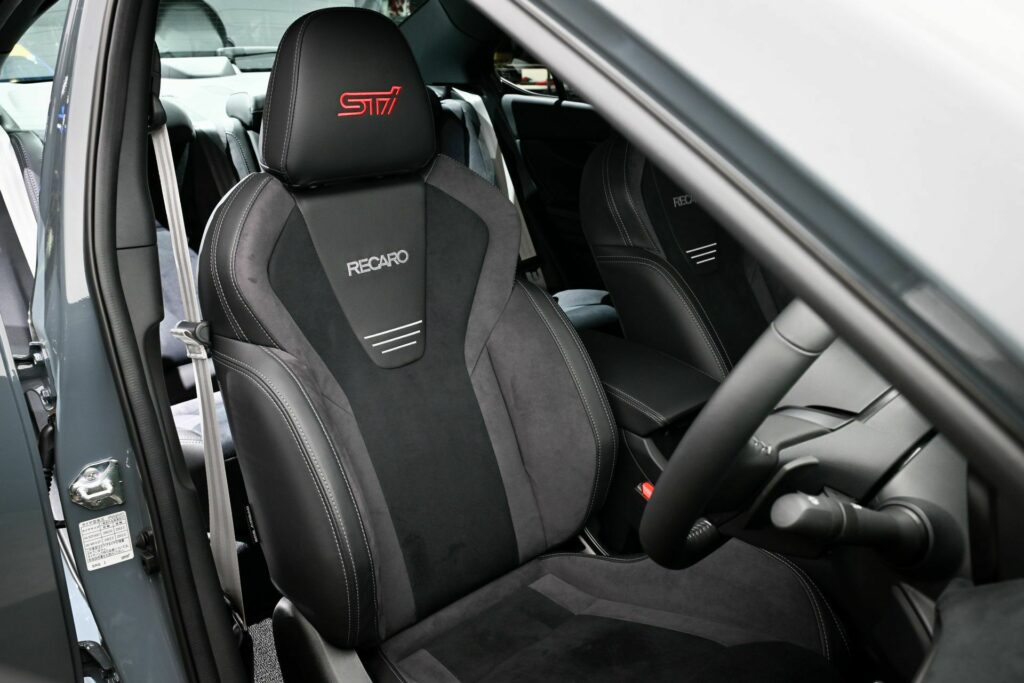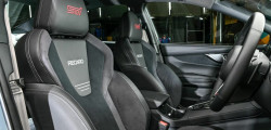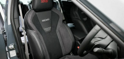 Under the hood, performance gets a boost with the addition of a tower bar and rear stiffening bar. The limited 500 examples feature a custom interior, featuring a genuine leather-wrapped steering wheel with silver stitching, shift boots adorned with silver stitching, and Recaro seats at the front covered in ultra suede material with contrasting stitching.
