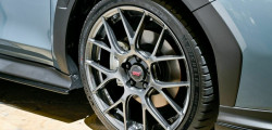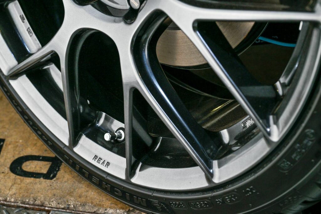 The exterior gets a facelift with a black front grille, black badges, a black lip spoiler, and Crystal Black Silica-painted wing mirrors and roof antenna. Standing out are the 19-inch BBS forged wheels, coated in a Super Black finish and wrapped in Michelin Pilot Sport 5 tires, bringing a touch of performance flair.