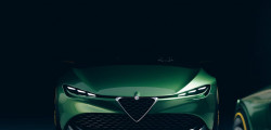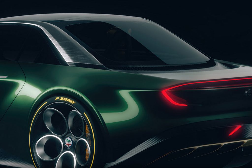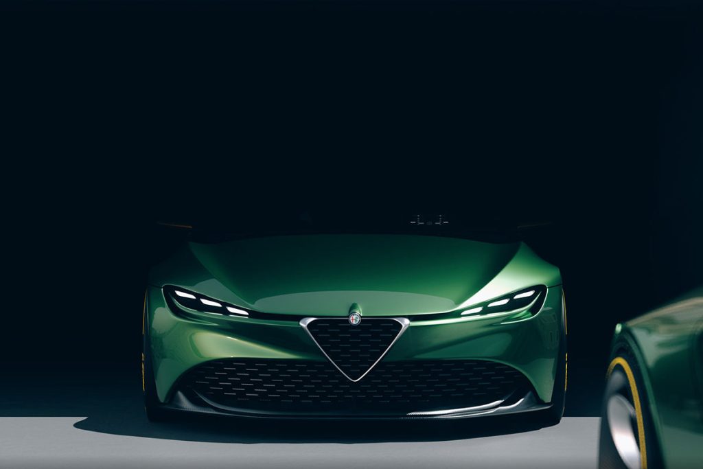 Alfa Romeo GT 1300 Junior was their biggest influence. However, none of its design traits can be seen in the drawing. A familiar Alfa Romeo scudetto dominates the front, which is complemented by powerful LED front lighting.