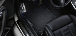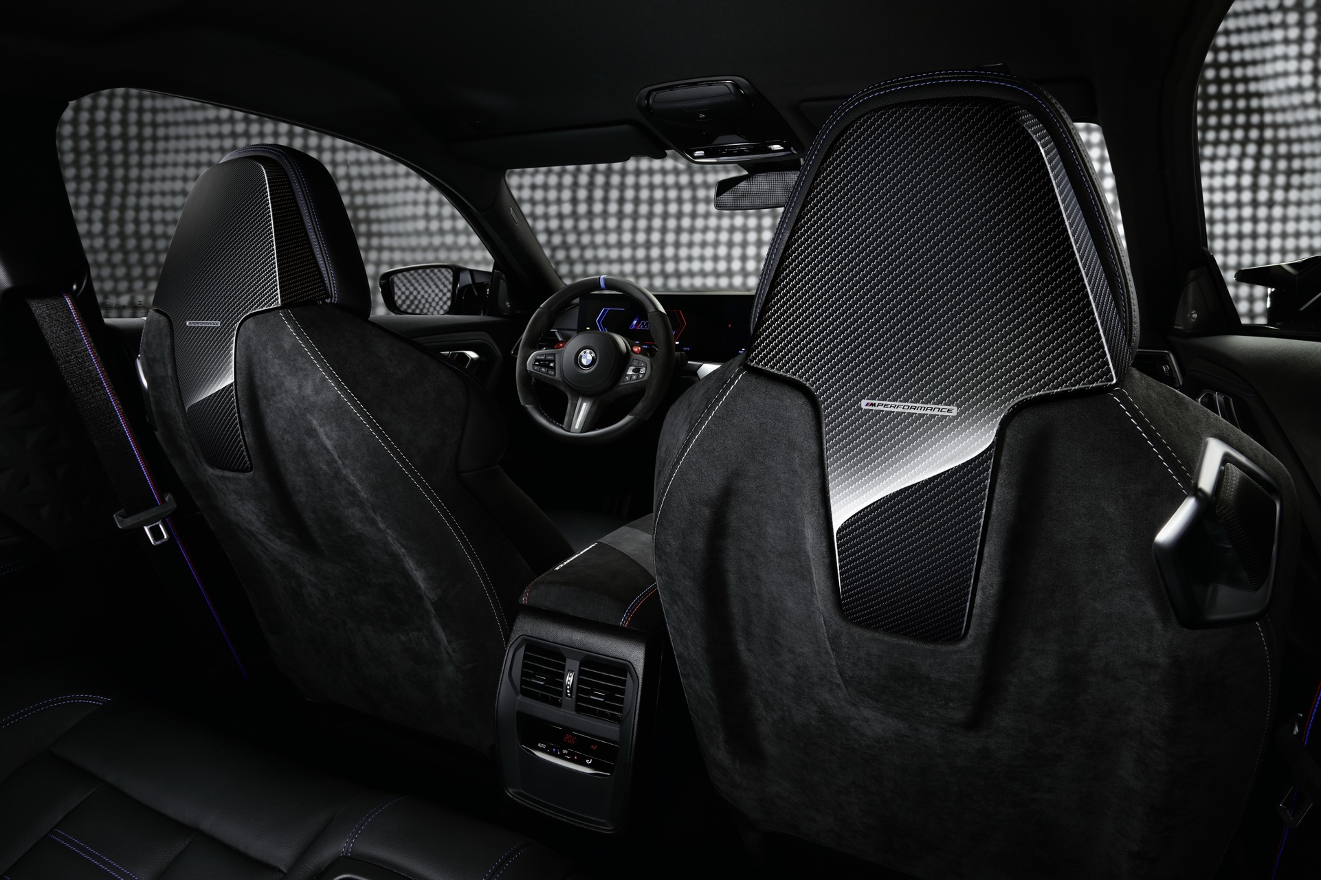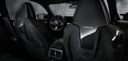 The M Sport seats and the Pro steering wheel are also available in Alcantara. Carbon fiber and Alcantara & carbon fiber and leather versions of the less extreme M Performance steering wheel are available, and so are carbon fiber paddle shifters. There are also velour M Performance floor mats, M Performance door pins, and a carbon fiber M Performance fuel filler cap.