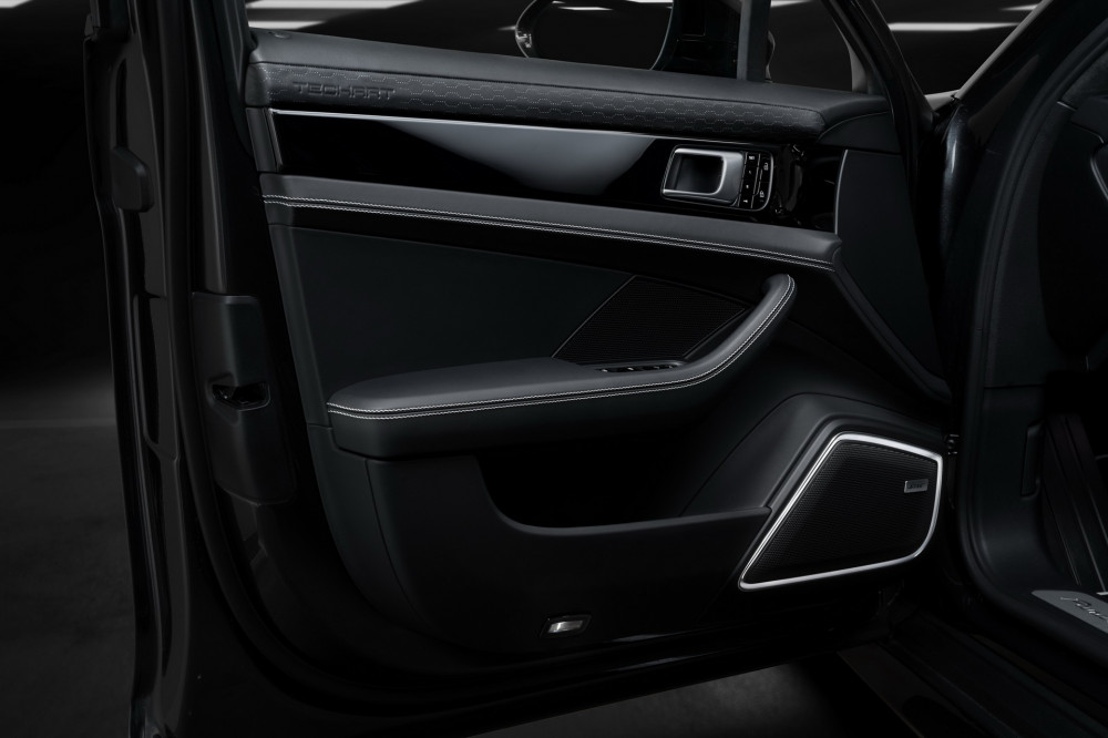 TechArt did some modifications to the model’s exterior by increasing its width of the car by 2 in (50 mm) at the front and 3 in (80 mm) at the rear. This was possible due to the wheel arch extensions. The front bumper brings a larger air intake with optimizable airflow, improved cooling of the brakes, and a redesigned integrated apron.