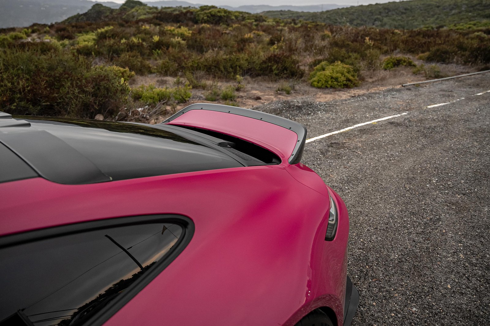 The spoiler lip has that classy carbon fiber finish, and you can personalize the base frame with a paint job that matches your car's color, blending style and function.