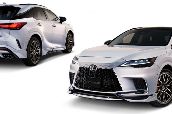 TRD provides a variety of F Sport components for 2023 Lexus RX buyers who want a more aggressive appearance. These are currently supplied via Lexus dealerships in Japan. The front splitter has been redesigned to better match the contours of the original bumper.