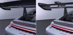 Two separate angles reveal a massive rear wing. One looks like it's wide open, and the other shows a piece of the wing at a very sharp angle. There are four separate drive mode dials on the steering wheel inside the Porsche 911 GT3 RS. Apparently, these are utilized to alter various automobile features. The specifications are unknown, but soon, this information ought to be accessible.