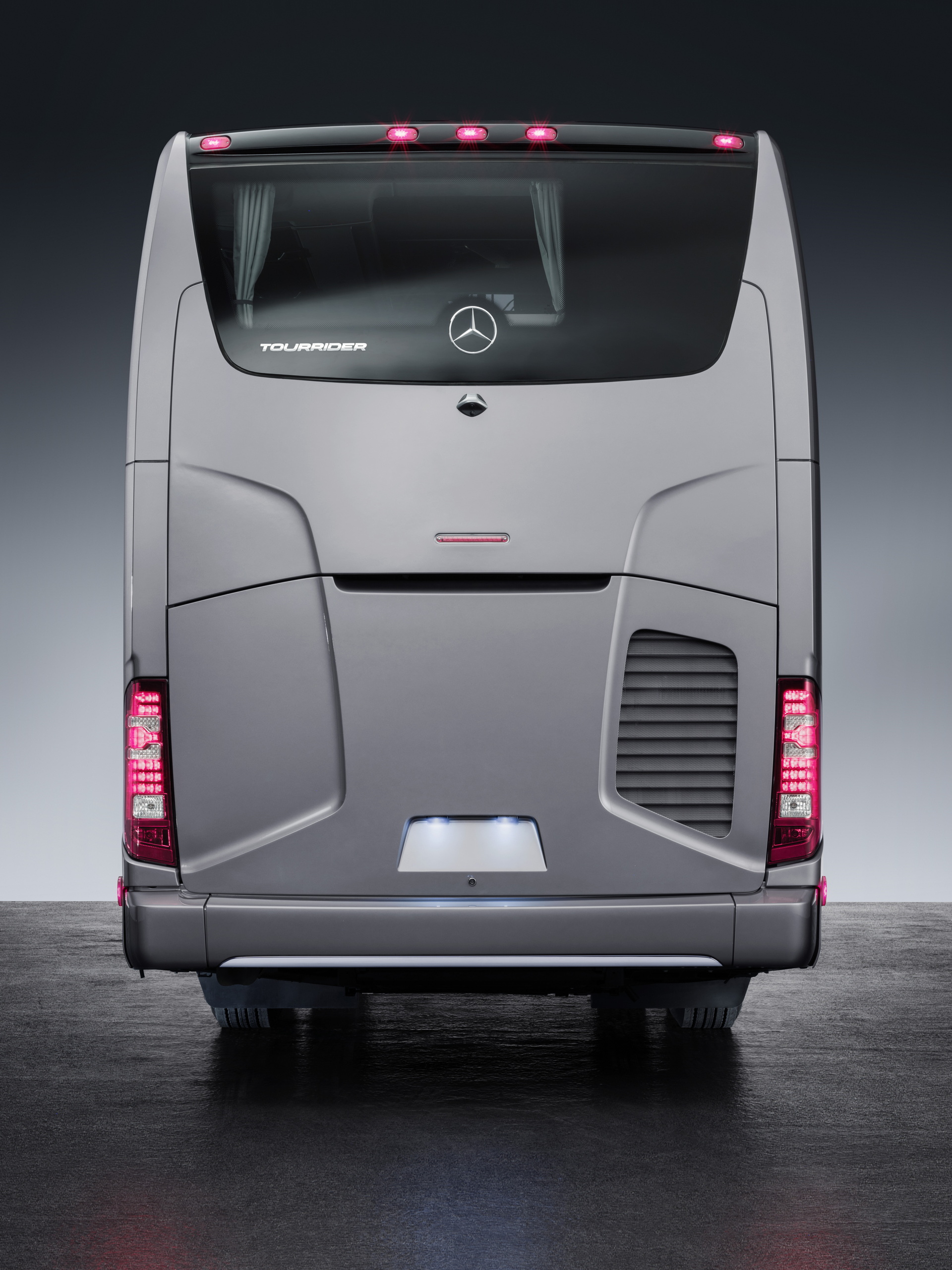 Once you include the energy-absorbing bumper, Mercedes-Benz Tourrider coaches are 45 feet 8 inches (13.92 meters) long, which means that even passengers who use wheelchairs will have plenty of space inside, due to a lift and two areas designated for those with special needs.