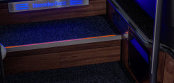 There are extra LED ambient lighting strips that may be fitted between the luggage racks or under the window sills for nighttime journeys. However, if passengers prefer to gaze up at the stars, the Tourrider Premium has an optional panoramic glass roof.