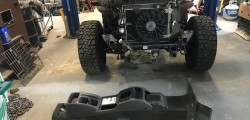 The owner installed a 3-inch raise kit from Altered Ego with SoftRide coil springs and SuperFlex rear links, as well as new axles with front and rear lockers, for more off-road confidence. Most crucially, he chose 17-inch wheels with gigantic 31-inch Cooper tires.