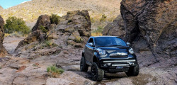 Eric Storz is the man behind this out-of-the-box design. The Sciuki iQ 4x4 project began with a 2012 Scion iQ that underwent an odd swap. It's a whole ladder-frame chassis and running gear from a 2000 Suzuki Grand Vitara. Storz had to reduce the Suzuki frame to make it suitable with the iQ's small body, shaving 17.5 inches (445 mm) between the axles and an extra 16 inches (406 mm) off the rear overhang, as well as constructing 8 new mounts.