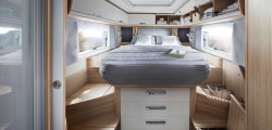 In keeping with the high standards set by the German manufacturer, the Arto is a plush twist on the classic camper van. There is a wide range of customization options available to the buyer. The increased weight is handled by the addition of an extra axle to the long-wheelbase models.