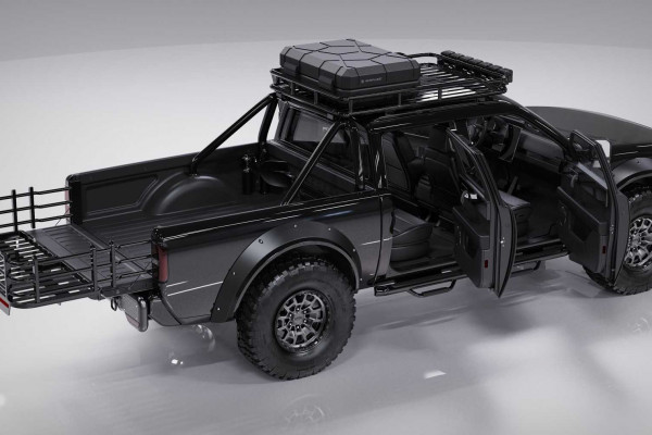 The automaker didn't reveal much else about the vehicle, but it has a similar look with LED headlights, bulging fender flares, and jutting bumpers. Additional lights, tubular doors, and a detachable tonneau cover will be among the new Alpha SuperWolf's accessories.