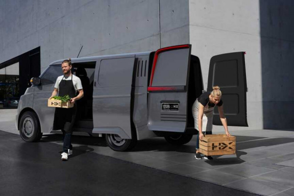 It embraces a distinctive design featuring a wraparound windshield, conventional van proportions, clever LED lighting at both ends, and functional sliding doors.