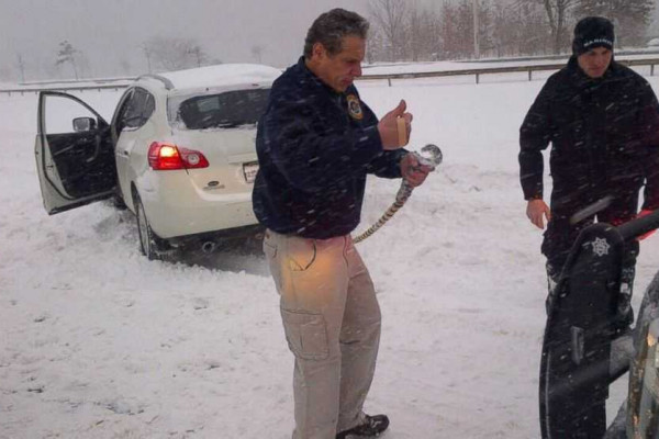 After New York Governor Andrew Cuomo issued the warning that New York City and Long Island roadways will be closed due to the snowstorm, his office posted a tweet with photos of him helping out stuck drivers on the Cross Island Parkway on Long Island.