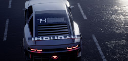Hyundai N Vision 74 is a concept for a fuel cell electric vehicle with a front-mounted hydrogen stack that charges a 62.4 kWh battery pack.