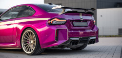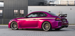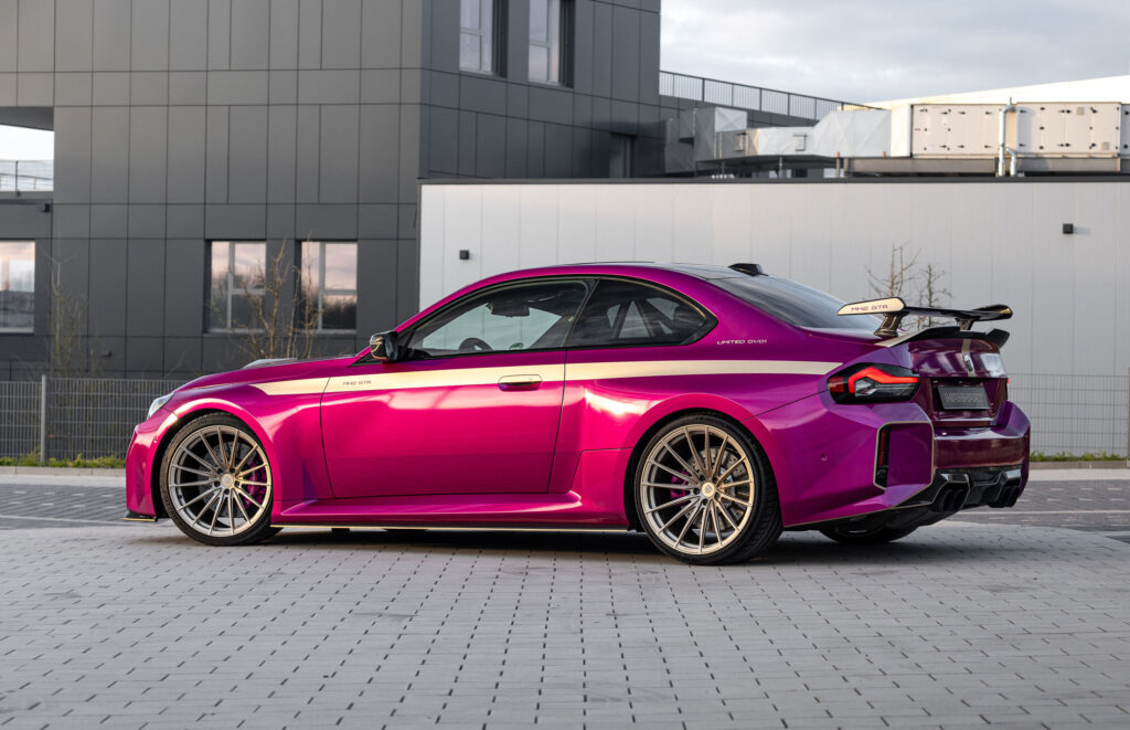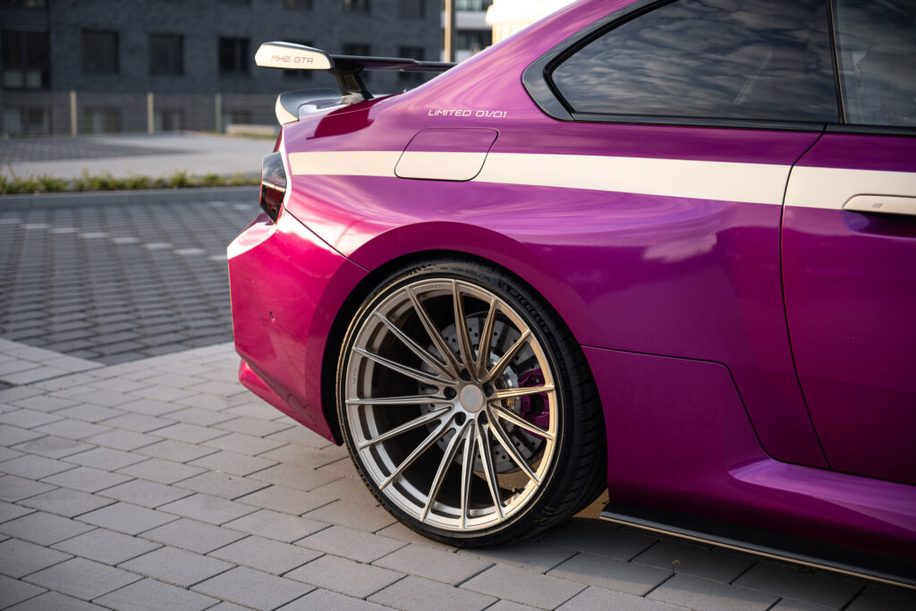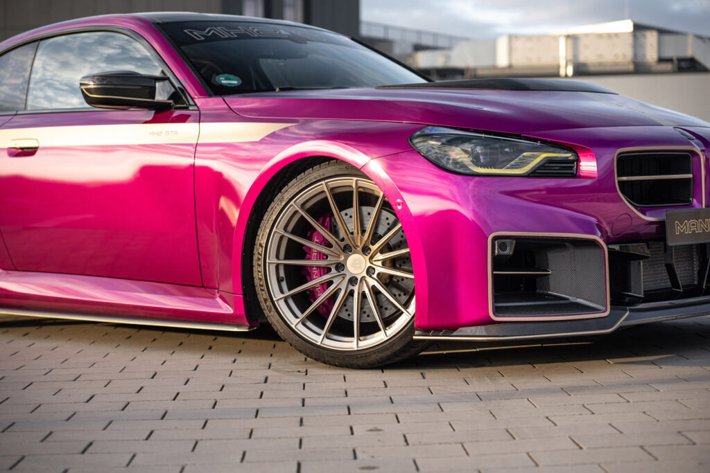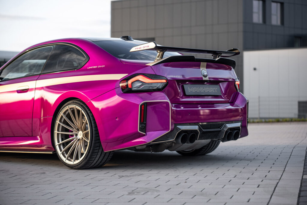 For those who want more, Manhart always has more to offer, and the brand-new MH2 GTR II does not let them down. The German tuner gives the M2 a layer of outrageously good magenta paint contrasted with champagne-colored Manhart decals.