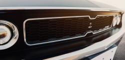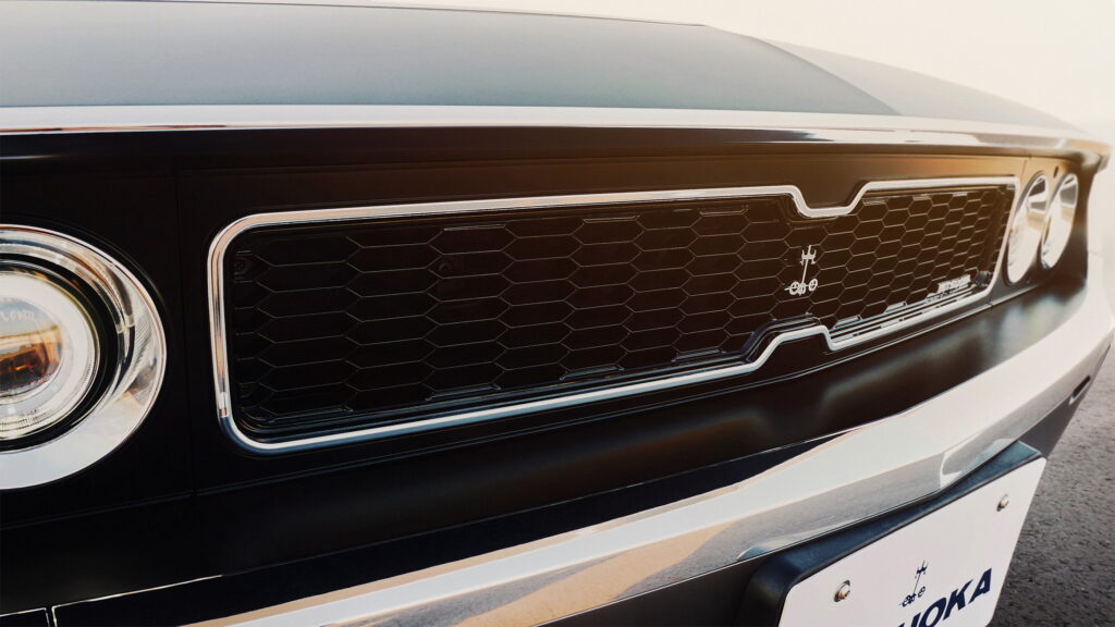 As you already noticed, because of the quad-round headlamps within the extended grille, the front end looks a lot like the Dodge Challenger. Conversely, the fastback tail with the louvers above the rear window gives it a Ford Mustang-like appearance.