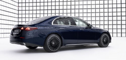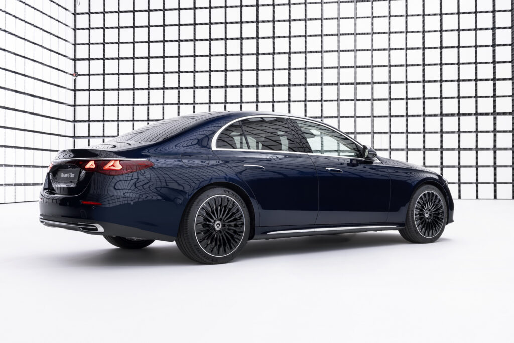 The new piano black grille surround up front and the three-pointed star pattern in the rear lights give the E-Class a distinct look that sets it apart from the competition. The grille may either be "progressive," meaning it has hundreds of small stars, or "classic," meaning it has the traditional Daimler slats.