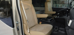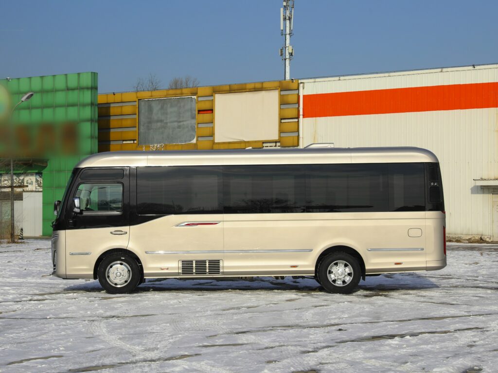 Inside, the cabin is a haven of opulence, featuring a large infotainment display, a wireless charging pad, an electronic shifter, and seats dressed in elegant beige leather. A 3.0-liter turbocharged V6, generating 292 hp and 308 lb-ft of torque, powers the bus, propelling it to a top speed of 130 km/h.