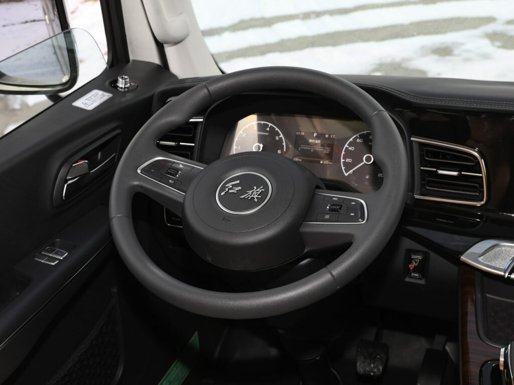 Sizing up like typical small buses at 7,295 mm in length, 2,090 mm in width, and 2,785 mm in height, the Guoyue flaunts a 3,990 mm wheelbase. What distinguishes it in China's market is its unabashed commitment to luxury, showcasing a large grille, LED daytime running lights, and the iconic Red Flag emblem running along the sides.