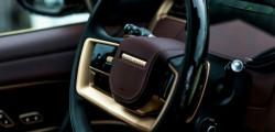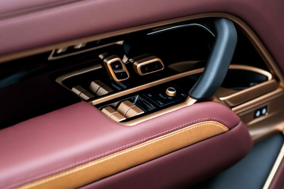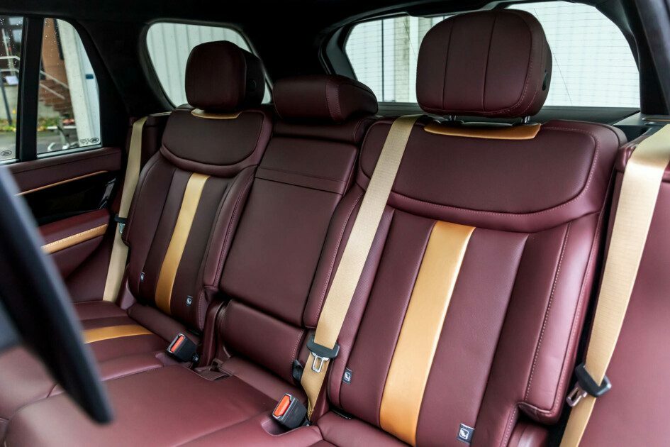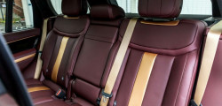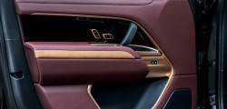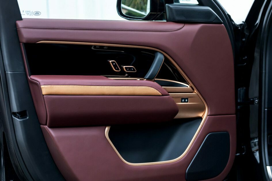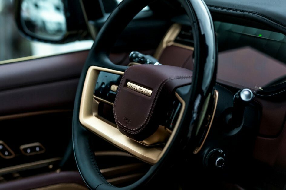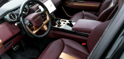 Entering the Range Rover feels like you're walking into a classy lounge. The interior has a really upscale feel to it thanks to the Bordeaux and gold leather upholstery. The luxurious appearance is finished with gold accents on the console, dashboard, and steering wheel.