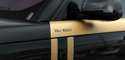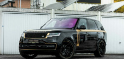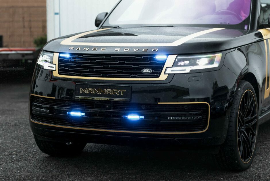 Imagine receiving a luxurious makeover from Manhart for your average Range Rover. To start with, the tuner added gold decals instead of just standard ones, giving it a very special vibe.