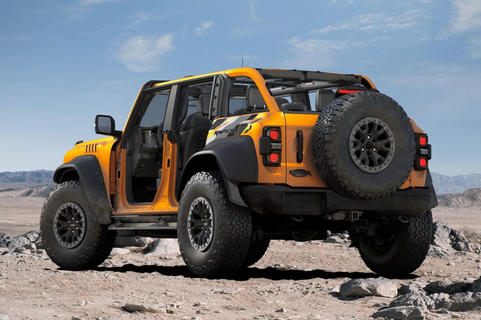 Ford Bronco Raptor, which starts at $68,500, is significantly more expensive. The most pricey variant, which includes the destination charge, raises the cost to $82,550. The $595 Cyber Orange Metallic Tri-Coat exterior finish and the $1,995 17-inch forged wheels are also included in the pricing. The leather-trimmed vinyl seats cost $2,495 more, whereas the Lux Package costs $2,695 more and includes adaptive cruise control, a heated steering wheel, a B&O sound system, and much more.