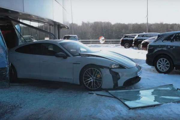 After informing his fans about the purchase of the Taycan in a new video, the driver accelerates into the dealership window. In the description to the video, Litvin wrote that he has never driven an EV and the accelerator pedal is too sensitive.