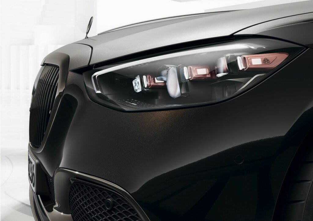 The Maybach GLS gets a redesigned grille with dark chrome accents and headlamps with rose gold embellishments. You may choose from three different paint jobs: white tone, black, or a two-tone scheme of black and mojave silver. Black Pearl Nappa leather or Crystal White leather with Black Pearl accents may be used to complete the interior.