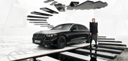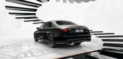 Numerous shades of gray, black, and white are included in the Night Series package for the S-Class. A special two-tone finish, combining Onyx Black and Mojave Silver, is also available. Black with black pearl Nappa leather or Manufaktur deep white or black leather are available for the interior elements.