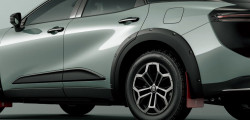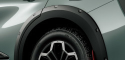 A towing hitch, bigger rear fog lights, and red mud flaps are other features of the production model. While the roof basket in the promotional images is an aftermarket addition, a roof rack is also available as an optional extra. Among the few interior changes are the 60:40 split folding rear seats, which are useful for transporting longer objects like surfboards, and the dashboard's gold Landscape branding.