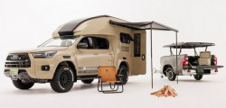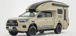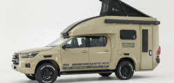 The BR75 Adventure Camper from Direct Cars enhances the Toyota Hilux dual-cab pickup by replacing the rear bed with a larger structure that has a longer rear overhang and an aerodynamic extension above the cabin.