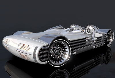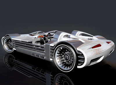 The exterior of the concept car represents a twin convertible cockpit. Besides the fact that it has no roof, this car also has no doors. On the other hand, it allows the driver to choose his positioning in the car, right or left.