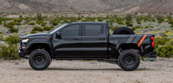 Fox Factory has also upgraded the truck's interior. They added auxiliary light buttons, quick-access buttons for the pre-set terrain settings, more Alcantara components, and carbon fiber elements. With a starting price of $209,999, this Silverado—one of just 500 models produced—is priced twice as much as the Ford F-150 Raptor R and the Ram 1500 TRX.