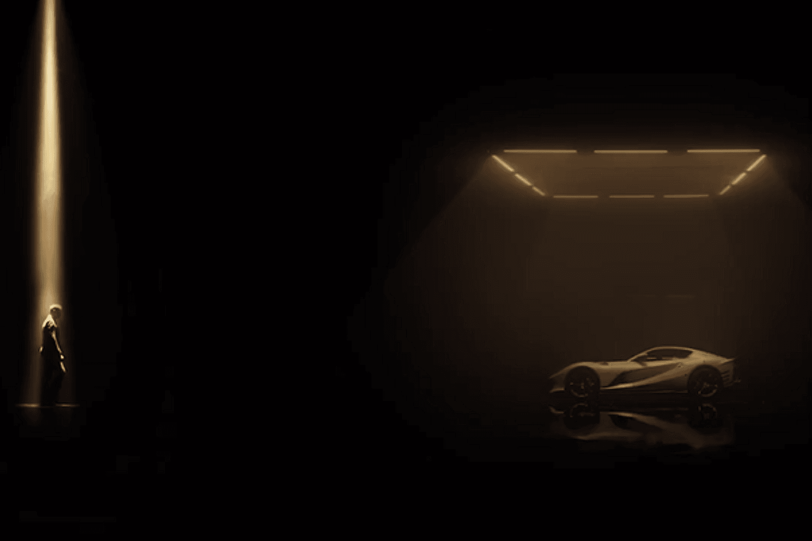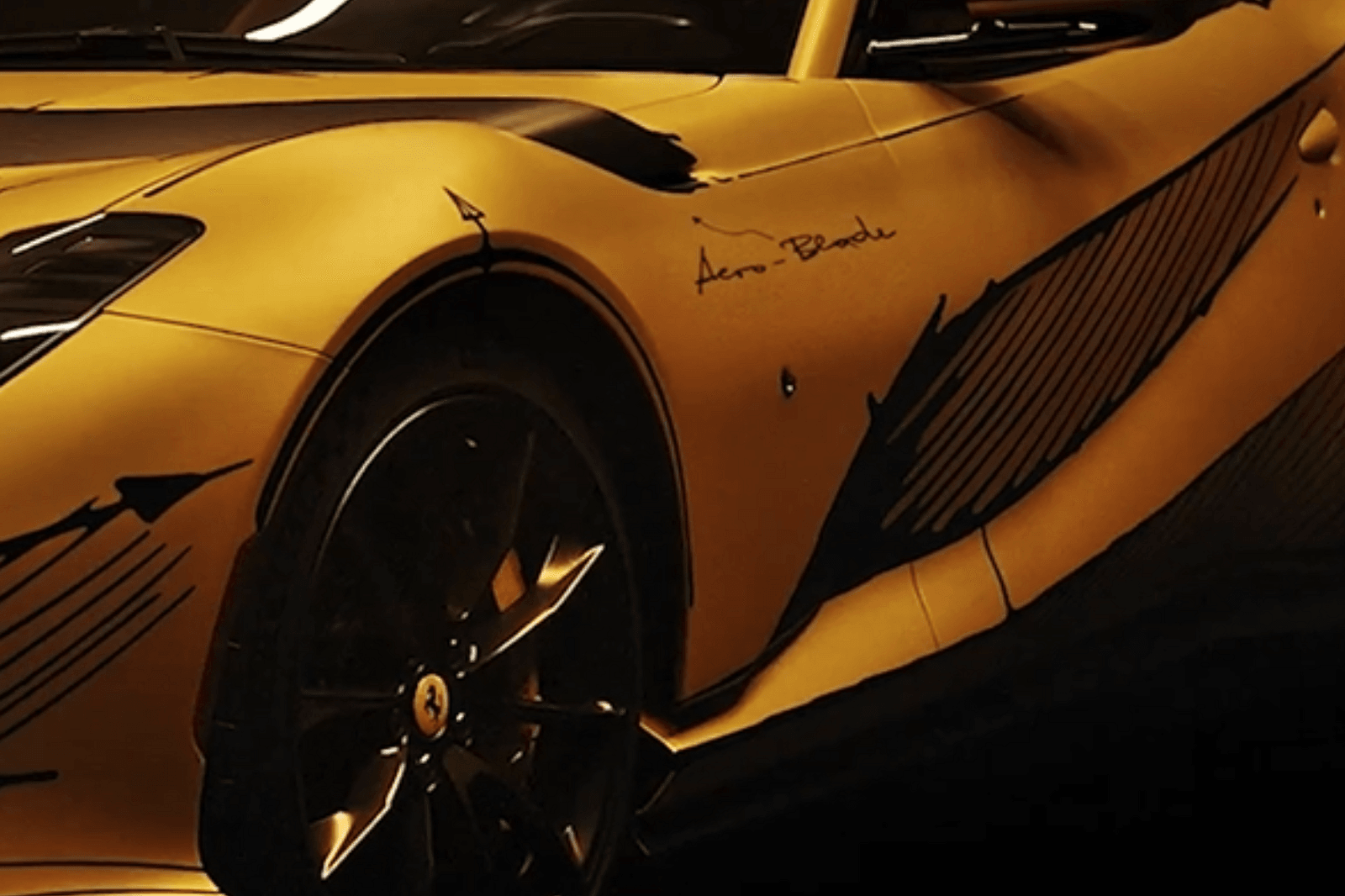 Carefully crafted script graces the car's surface, including the elegant Competizione 812 lettering in cursive near the wheel well. Inside, the yellow theme goes with the sketch idea, making the inside and outside look like they belong together.