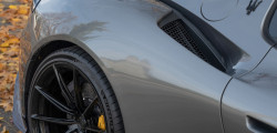 The seven-piece body kit, named after the company's late founder's dog, is crafted from prepreg carbon fiber. Canards, two Trident-shaped vent inserts in the bonnet, different side skirts, a roof scoop, a wider rear spoiler, and a new diffuser are just some of the new features.
