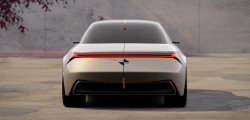 This can be seen up front, where the vehicle features a retro-inspired grille with a contemporary look. The grille sits above a carbon fiber front splitter and is accompanied by flowing headlamps. The coupe also has a unique front fascia and an edgy accent that runs into the fenders before moving into the shoulder line and extending around the whole car.