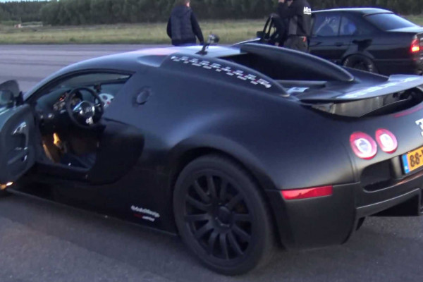 The amazement of the Bugatti passengers was strong here, but they actually shouldn't be amazed at all. The Beemer has a 3,8-liter engine with an enormous semi-truck sourced turbocharger installed on it. The result is a power of 900 HP. Now quite as much as the Veyron, but impressive nevertheless.